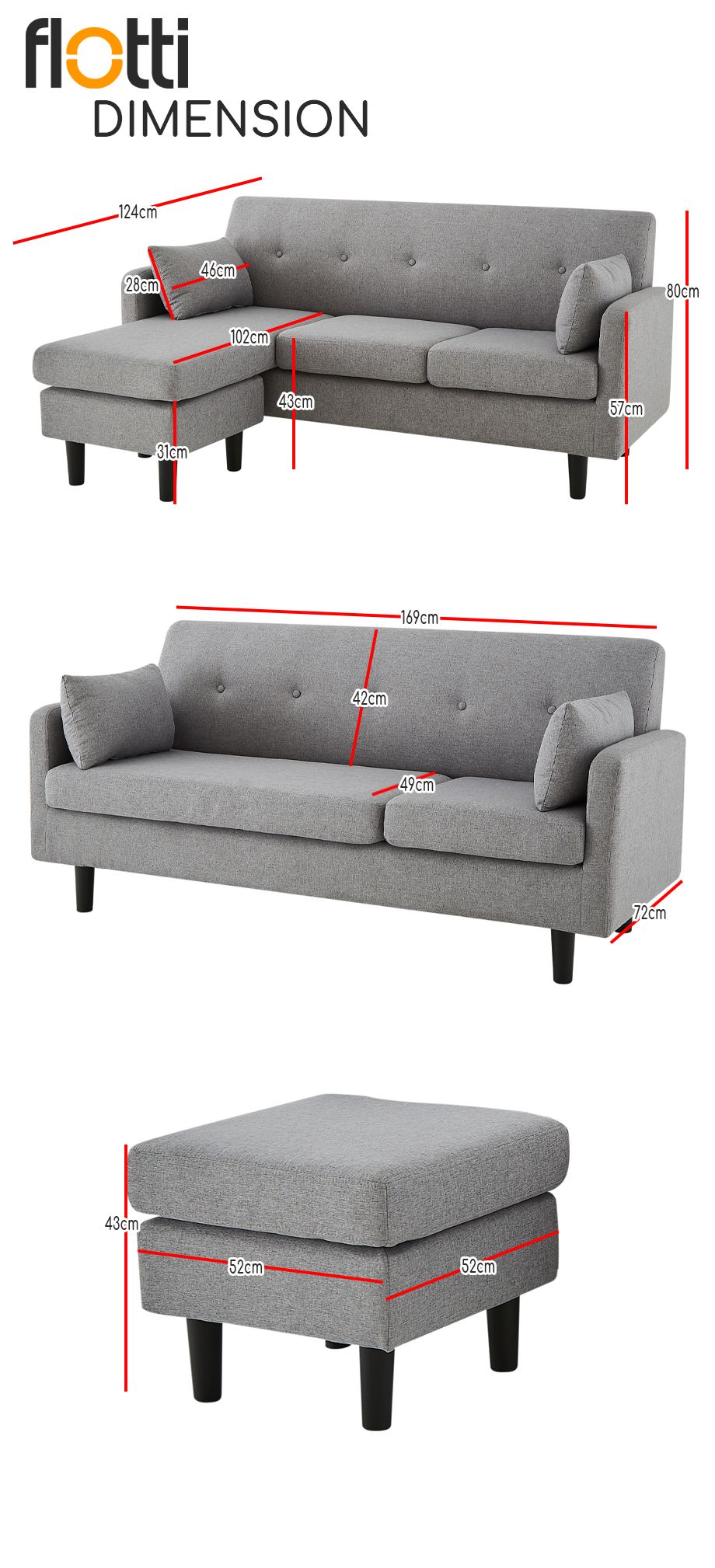 - Features: 3-Seater Sofa w/ Ottoman, Convertible to L-Shape Corner Sofa (Reversible to Left or Right), w/ 2 Pillows