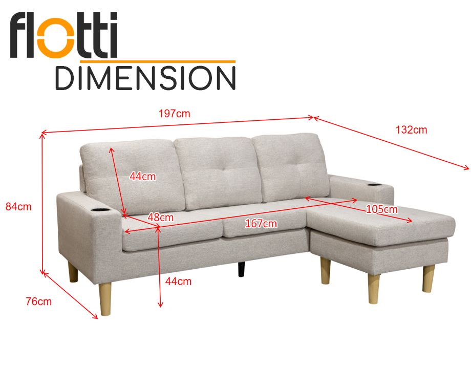 Flotti Fiorella Sofa with Ottoman Convertible/Reversible L-Shape Sofa, with 2 Cup Holders (Grey, Beige, Brown, Aegean Teal)