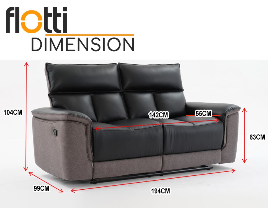 Flotti Freya Air Leather Love Seat (Manual, Power) Reclining Chair (Black+Dark Grey, Light Grey, Beige)