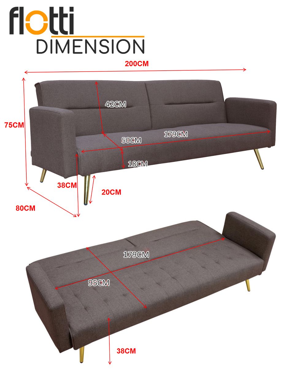 Flotti Perrine Water-Repellent Fabric Sofa Bed (Grey, Brown)