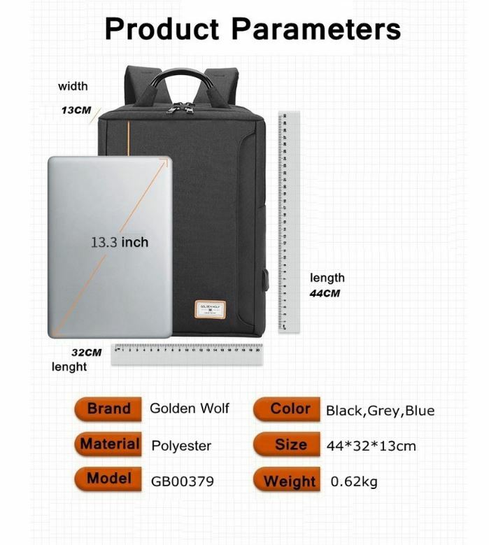 GOLDEN WOLF GB11 BACKPACK (Colors: Black, Blue, Grey)