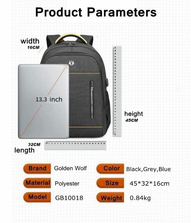 GOLDEN WOLF GB12 BACKPACK (Colors: Black, Blue, Grey)