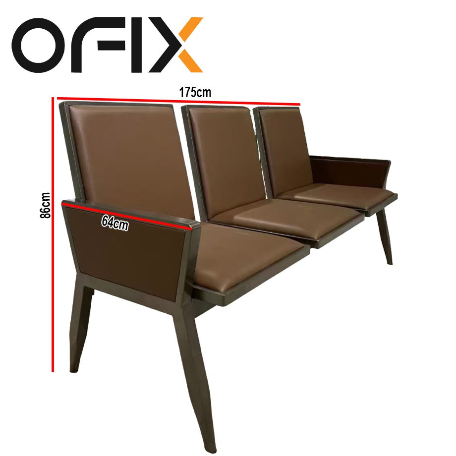 OFIX 3-Seater PU Steel Airport Gang Chair (Green, Black, Brown)