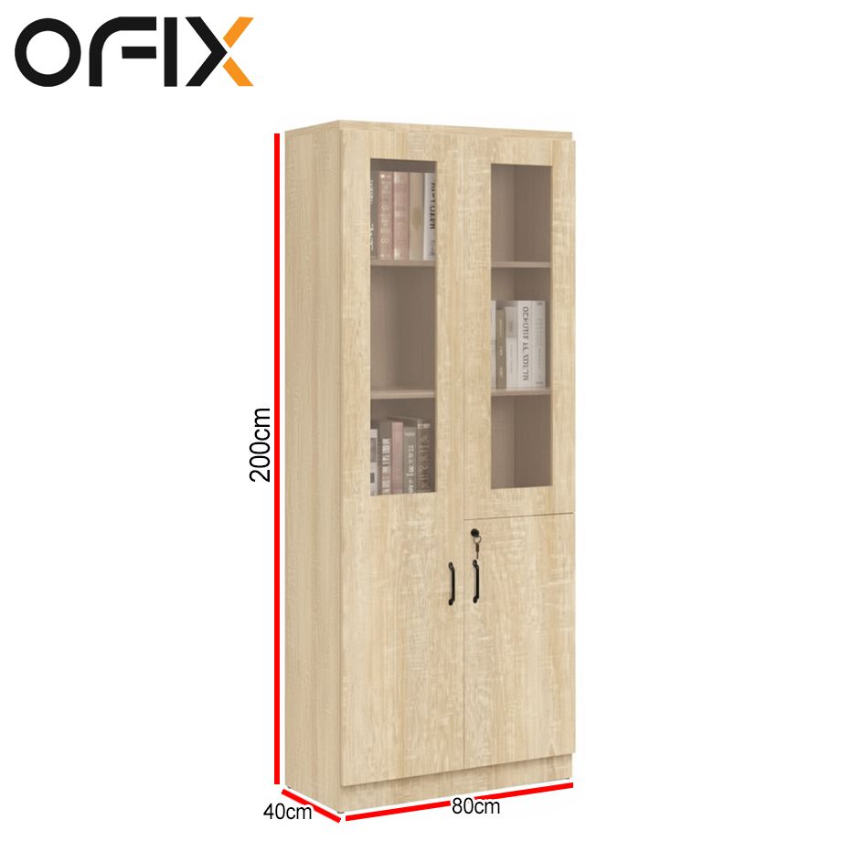 Ofix 5-Layer Glass Swing Door Filing Cabinet (Natural Wood)