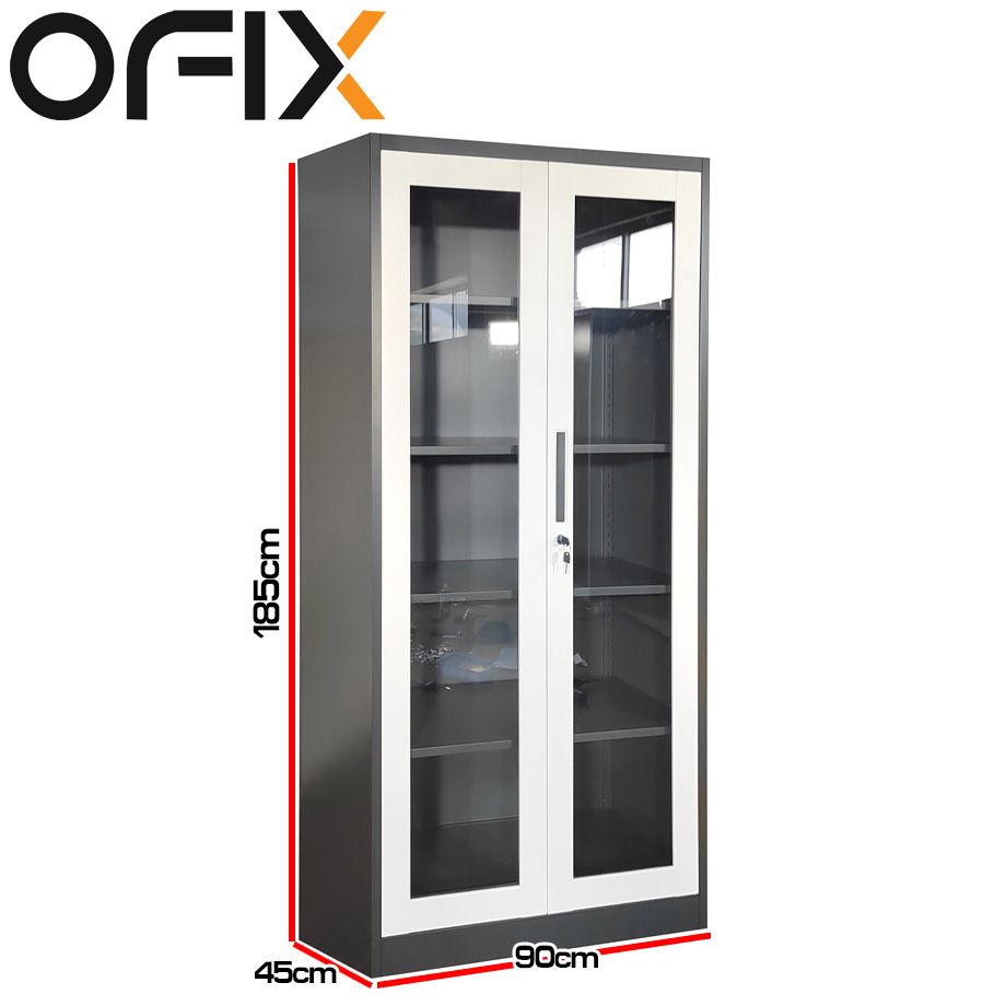 Ofix 5-Layer Glass Swing Door Steel Cabinet (Dark Grey+White, White)