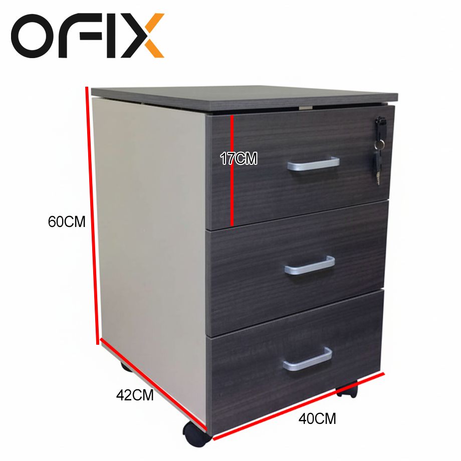 Ofix A21 Mobile Pedestal 3 Drawer (White, Black, Purple Wood+Khaki)