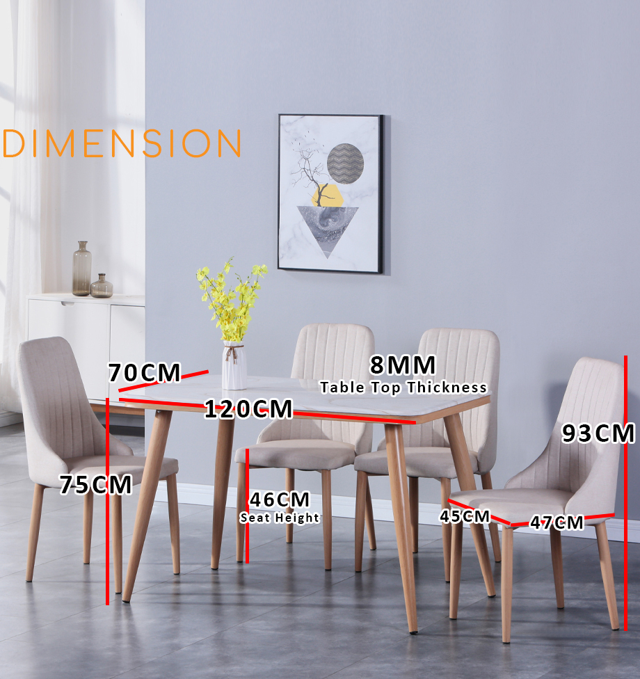 Ofix Clarette PU Leather Seat Metal Leg Dining Chair (Beige PU+Wood Grain)