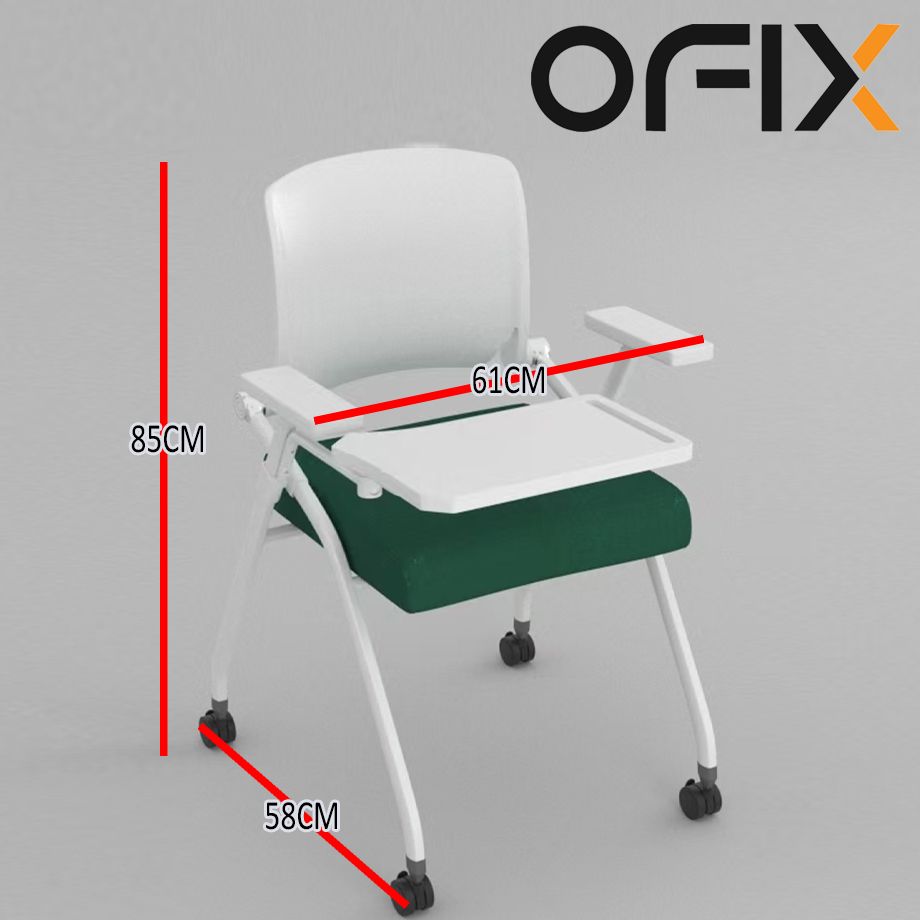 Ofix Deluxe-62 School Chair With Wheels (White+Green)