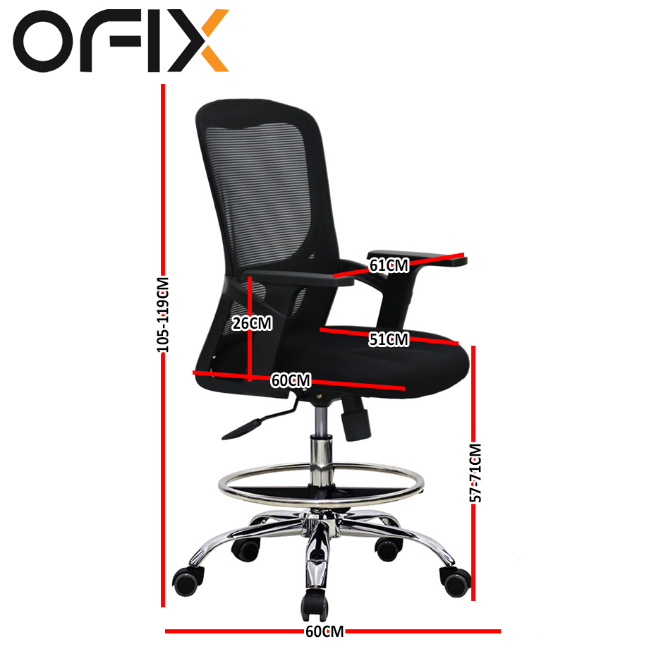 Ofix Deluxe D88 Tilt-Back Drafting High Chair (Black)