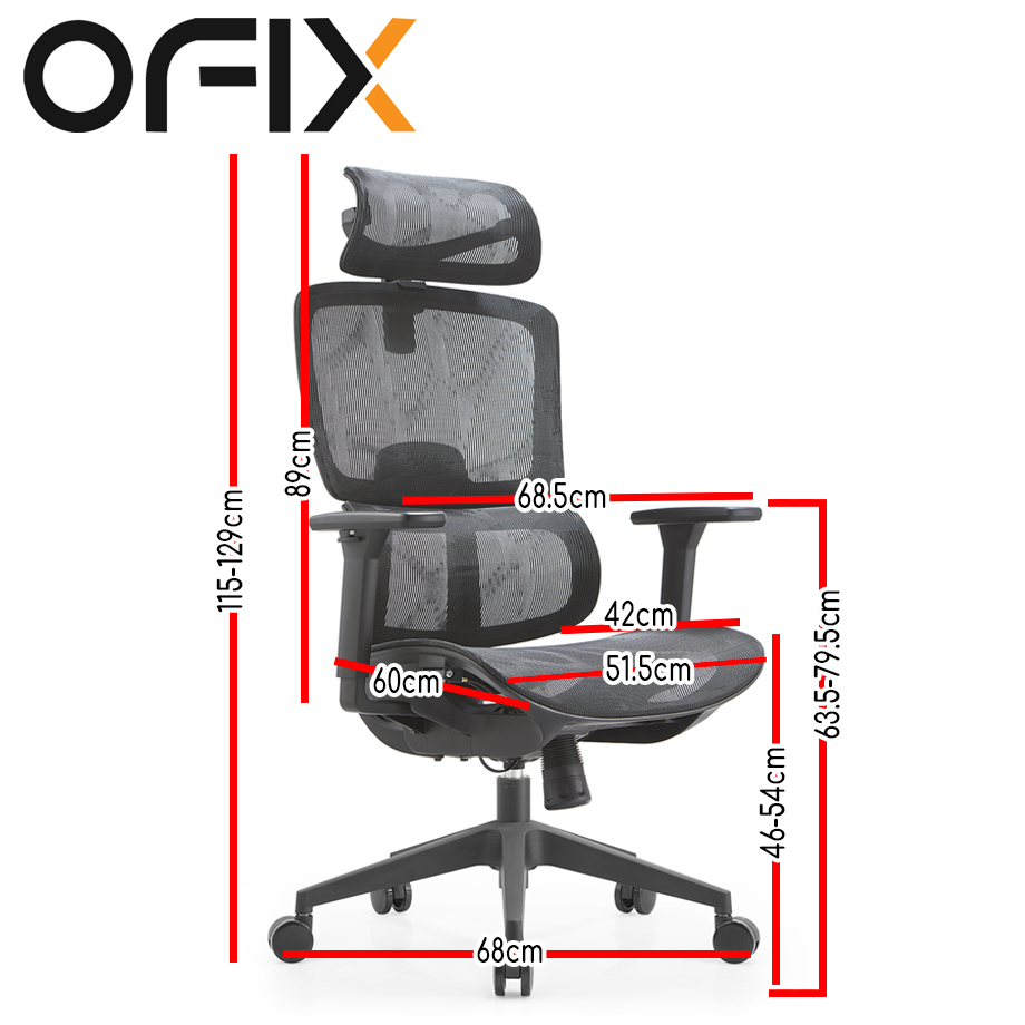 Ofix Deluxe LM-186A-QW High Back Full Mesh w/ Adjustable Headrest, 3D Armrest Office Chair (Grey, Black)