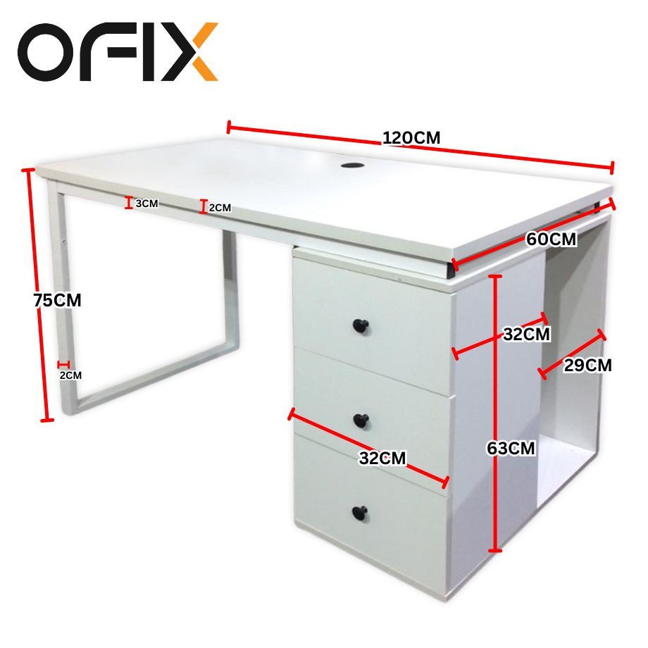 Ofix Desk 21 with 3 Drawer (White) (120*60)