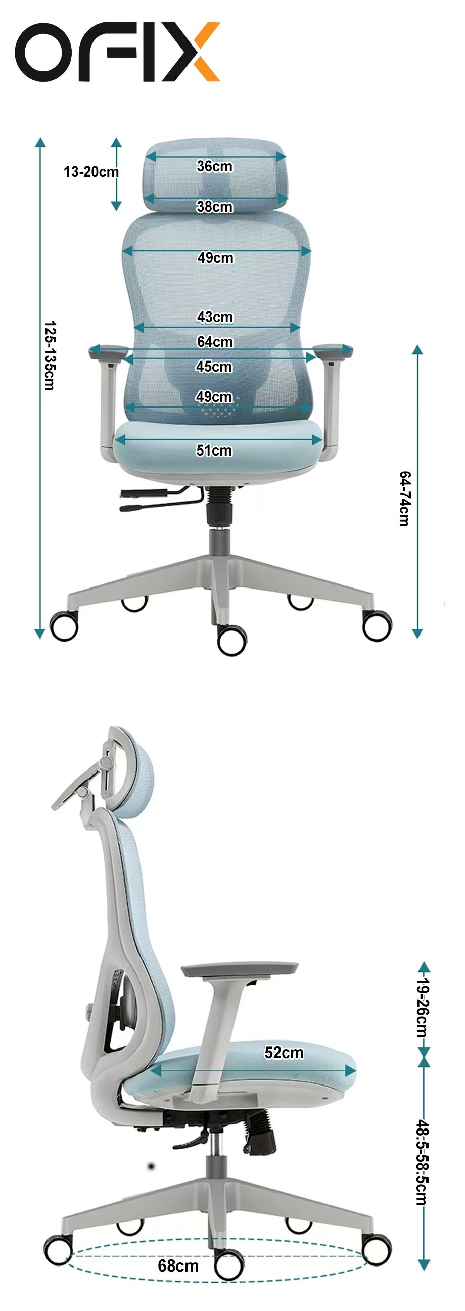 Ofix Premium SV18 High Back Mesh Chair, Adjustable Headrest, 3D Adjustable Armrest, w/ Seat Slide (Black, Grey)