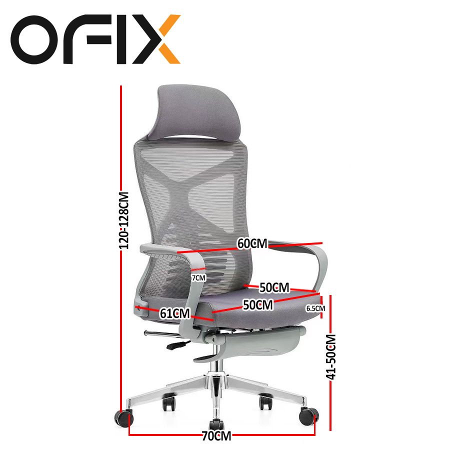 Ofix Premium-WH3 PRO Bionic Spine Support Chair w/ Footrest (White+Grey, Black, All Grey)