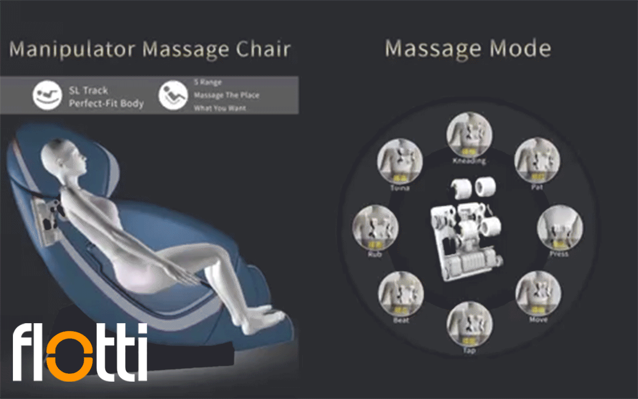 (Sale) Flotti Athena Cashmere Kinetic Massage Chair, Full Body Air Massage, Dual Action Foot Rollers, 10 AI Programs, Built-in Bluetooth Speaker, Extensive SL Track (Leather Torn & Scratches)